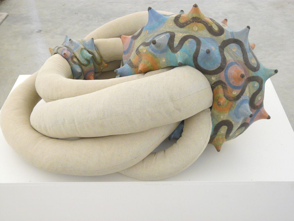 du foyer à l’atelier. Pour les parties en tissu rembourré de ses sculptures, elle détourne aussi l’usage de la machine à coudre, machine « ménagère » par excellence, pour le promouvoir au rang de technique d’art. Et pour les parties en céramique, elle fait de même avec le four de potier, machine d’artisan.