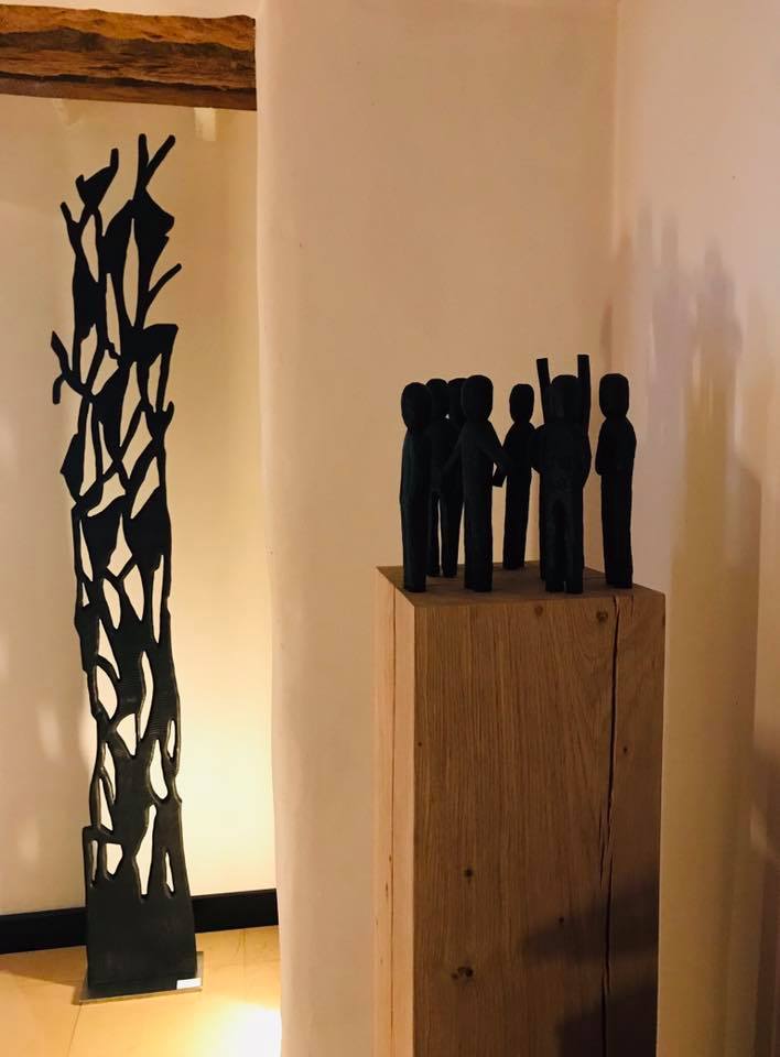 Ses sculptures semblent émaner du plus profond de notre terre et de nos cultures. Révélées, elles s’en viennent résonner avec notre histoire. Passé et Présent.
