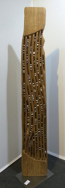 « Les sculptures bois de Marc Laffolay dans lesquelles on retrouve fréquemment, participant d’une même respiration, ces deux constantes que sont le cercle et la verticale, donnent à voir et donnent à toucher. Ses œuvres interpellent l’œil, la mémoire et la lumière. Elles redéfinissent l’espace en créant un univers qui leur est propre.