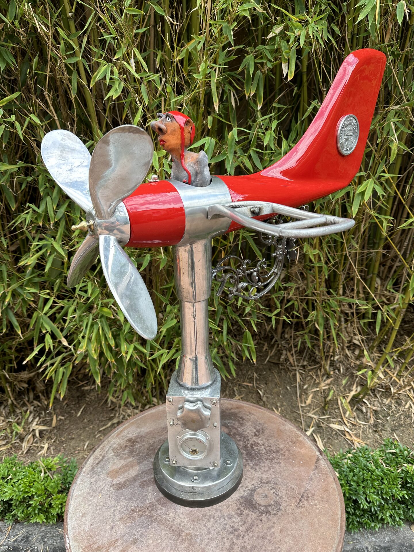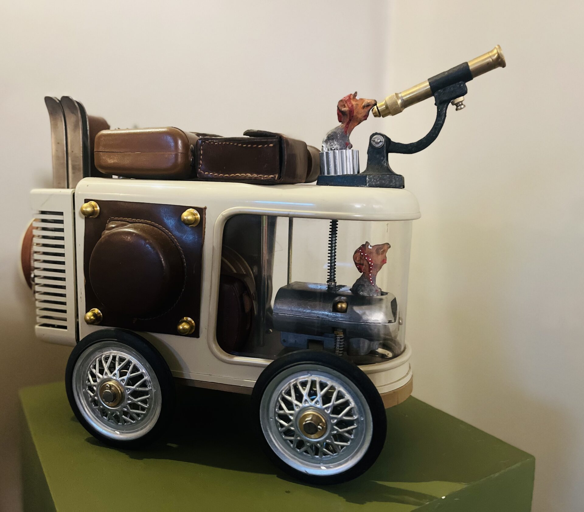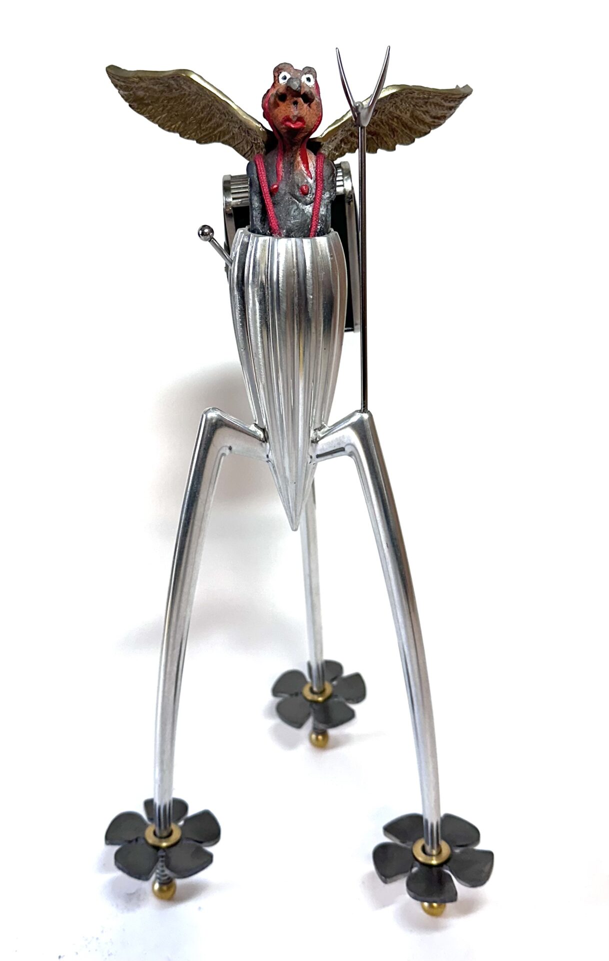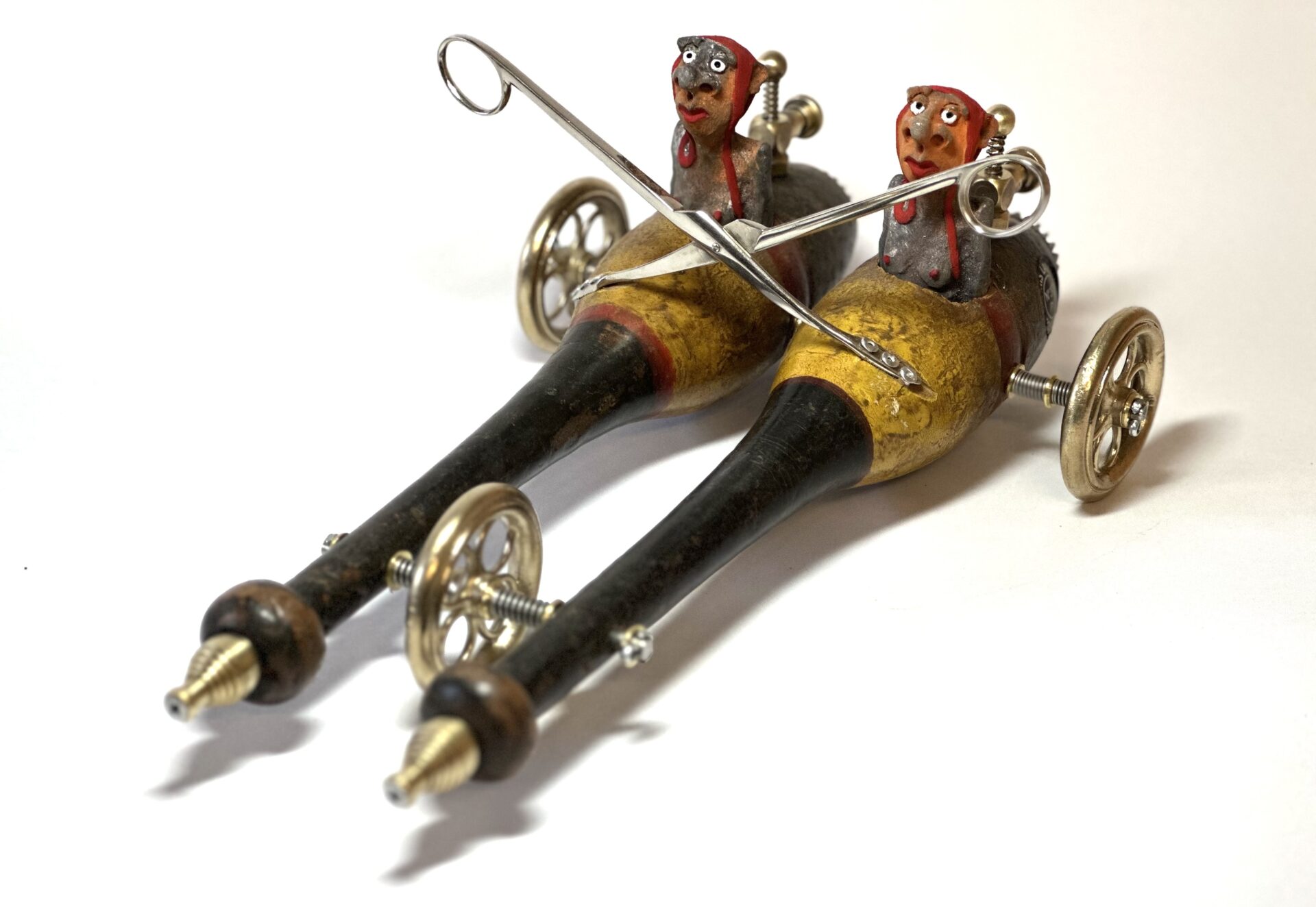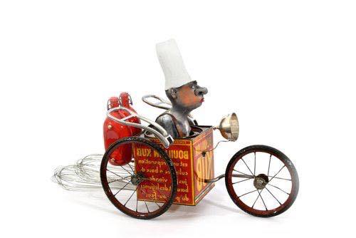 Ces hommes fragiles sculptés par Yannis Lagresle surviennent d’un monde innommable. Il n’y a pas d’artifice, la sculpture parle d’elle-même et elle est vraie. Elle est juste libre de s’exprimer, de dire…  Ces personnages prennent vie, ils les intègrent dans des objets détournés qu’il transforme, déforme, reforme…Il y a les hommes, parfois le chien et tout ce qui les fait évoluer dans un univers unique, insolite, bien à lui…