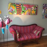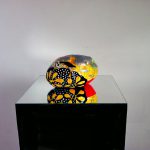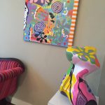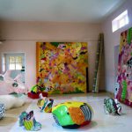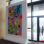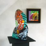 Toutes ses œuvres très chromatiques intègrent aux formes les plus libres, les plus pulsionnelles, des formes très contrôlées et réfléchies empruntées au vocabulaire géométrique comme pour nous convaincre que la réconciliation entre le sensible et le rationnel. est possible.