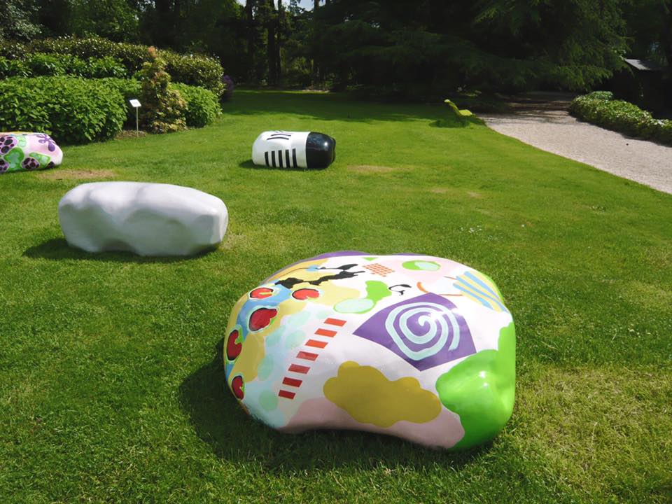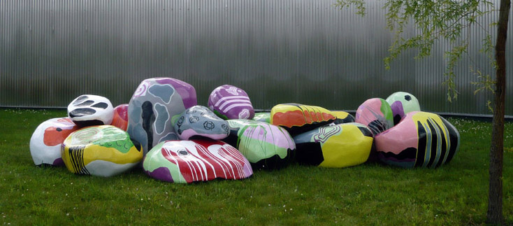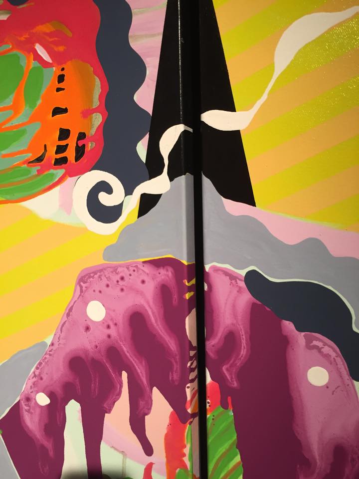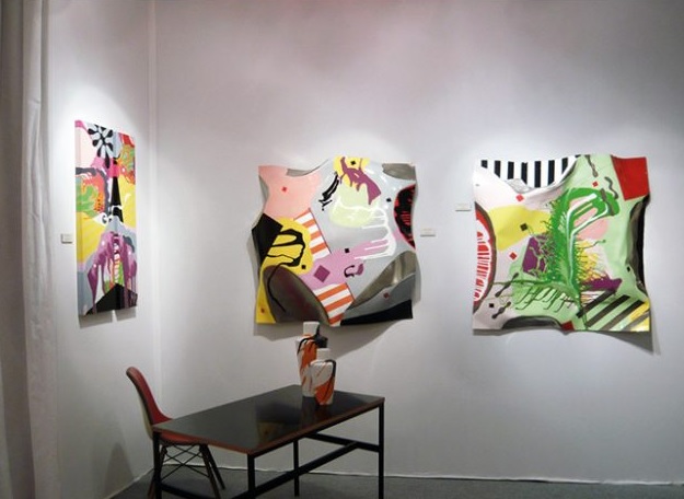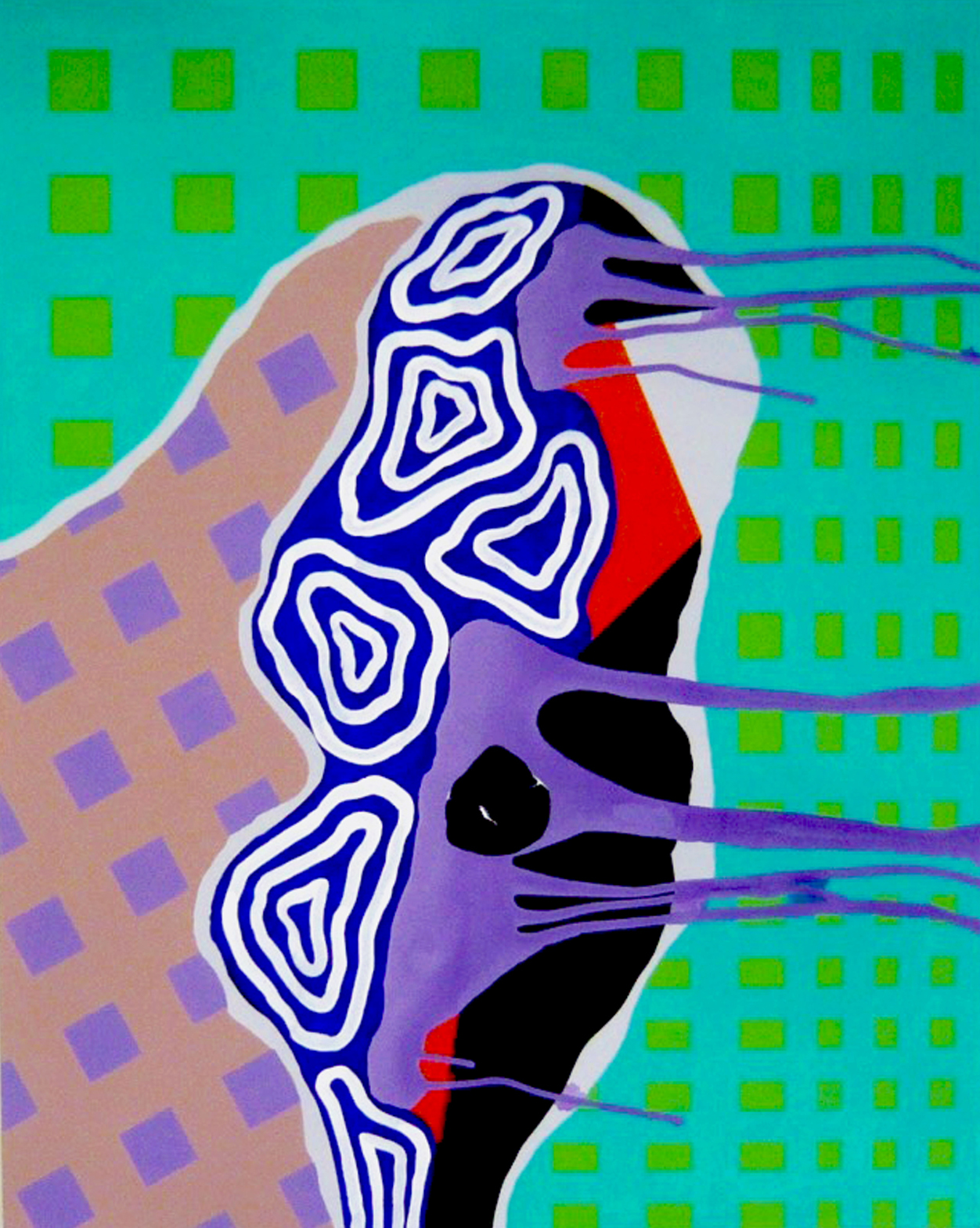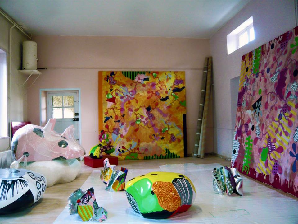 Toutes ses œuvres très chromatiques intègrent aux formes les plus libres, les plus pulsionnelles, des formes très contrôlées et réfléchies empruntées au vocabulaire géométrique comme pour nous convaincre que la réconciliation entre le sensible et le rationnel. est possible.
