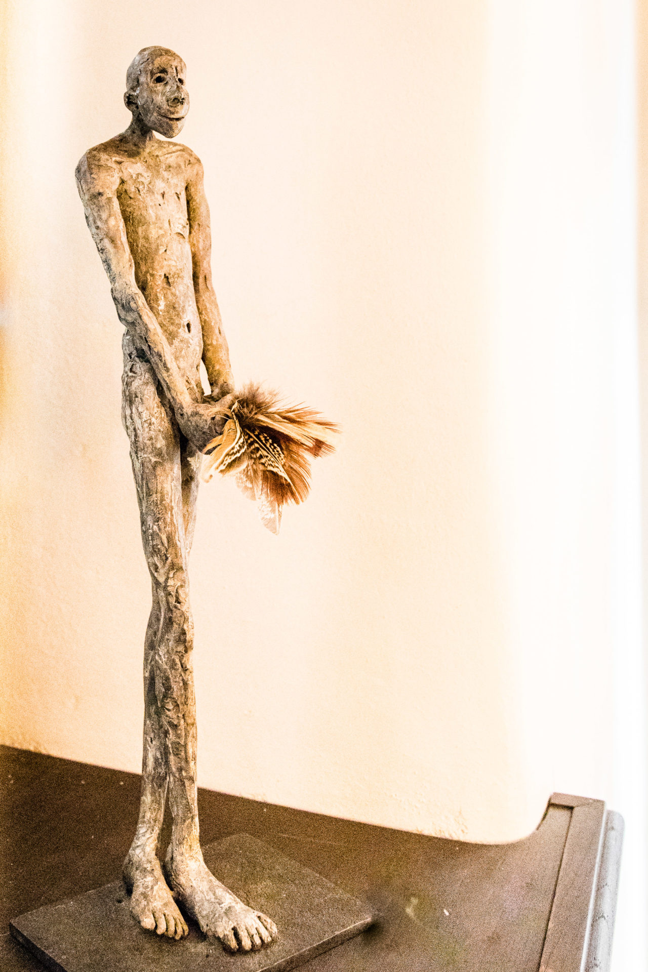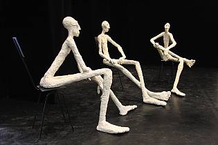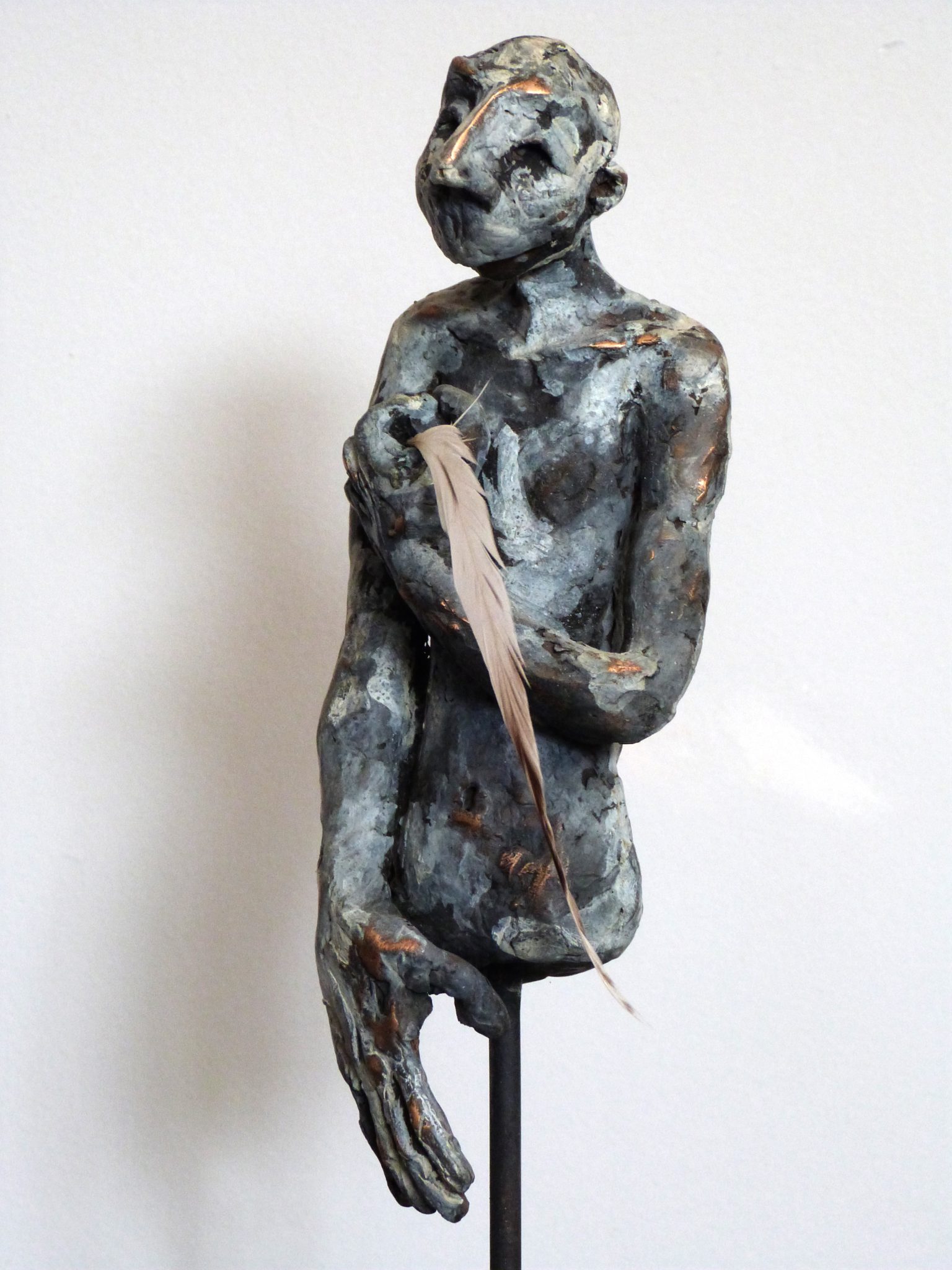 Avec ses sculptures en grès ou en bronze, nous entrons dans un monde irréel, où l’imaginaire et la matière font connaissance et se marient parfaitement. La fausse fragilité de la porcelaine se pose sur l’acier. La chaleur du bois frôle une partie en bronze. Il y a une réelle sensibilité dans les postures des corps, le mouvement du cou des volatiles au grand bec…