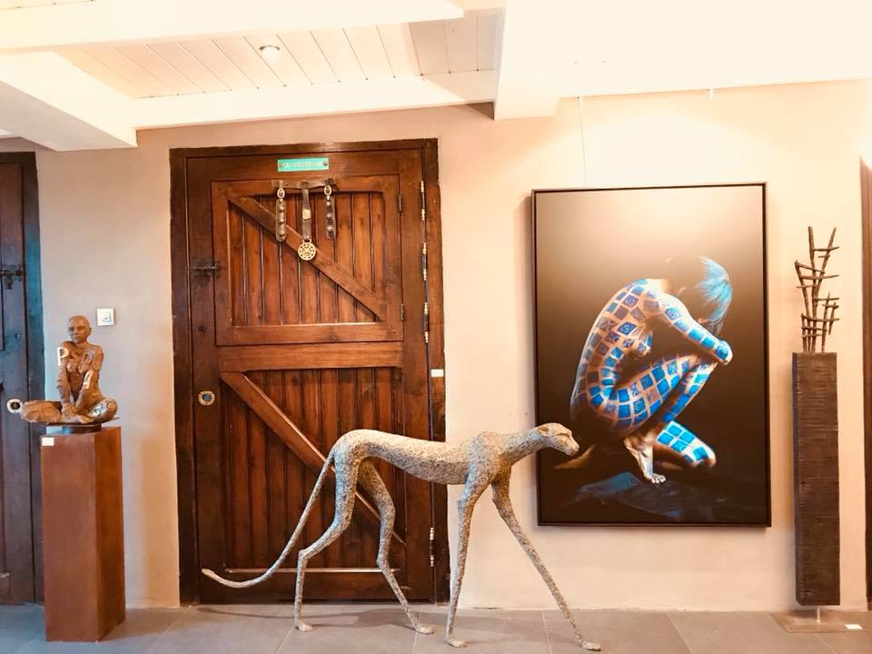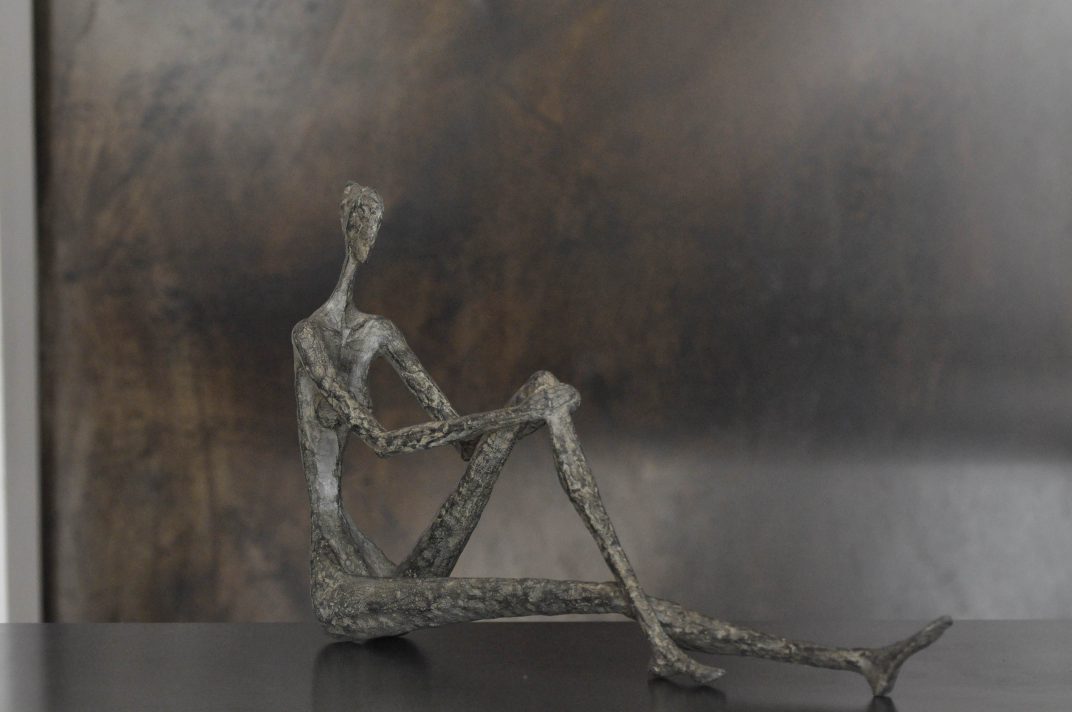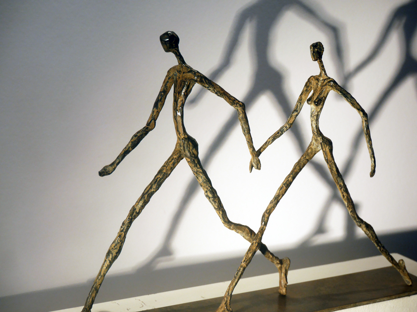Mais les sculptures de Sylvie Mangaud c’est aussi une disproportion volontaire qui rend l’ensemble harmonieux avec des jambes qui s’étirent à l’infini, alliant longueurs des lignes et douceurs des courbes. Les visages restent lisses, laissant les corps parler, délicatement sensuels mais jamais impudiques.